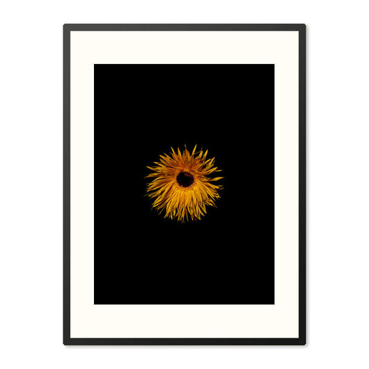 Deze hoogwaardige kunstposter toont een gedetailleerde foto van de strobloem (Helichrysum bracteatum), ook bekend als de immortelle. De bloem is vastgelegd in een professionele fotoruimte, waarbij het contrast tussen de levendige bloemblaadjes en de zwarte achtergrond de tijdloze schoonheid van de natuur benadrukt.
