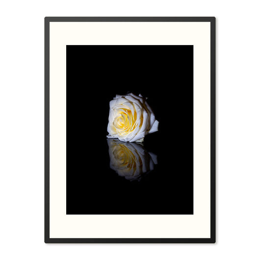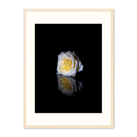 Breng serene elegantie in je interieur met deze kunstzinnige poster van een witte roos, subtiel verlicht tegen een diepe zwarte achtergrond. De bloem symboliseert puurheid, rust en een nieuw begin — perfect gevangen in een moment van stille schoonheid. De reflectie onder de roos voegt een extra dimensie toe aan het beeld, waardoor het lijkt alsof de bloem zweeft in een tijdloze ruimte.